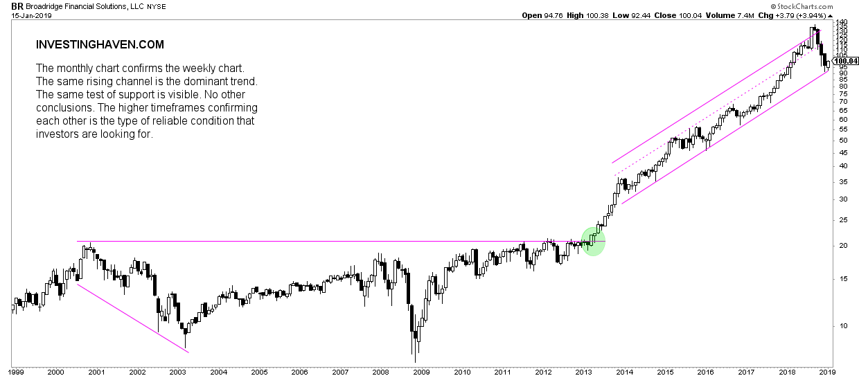 Let’s review the 3 timeframes of Broadridge Financial Solutions, and see whether we can have a confirmation of the different timeframes (reliable) or whether we see a divergence (unreliable).