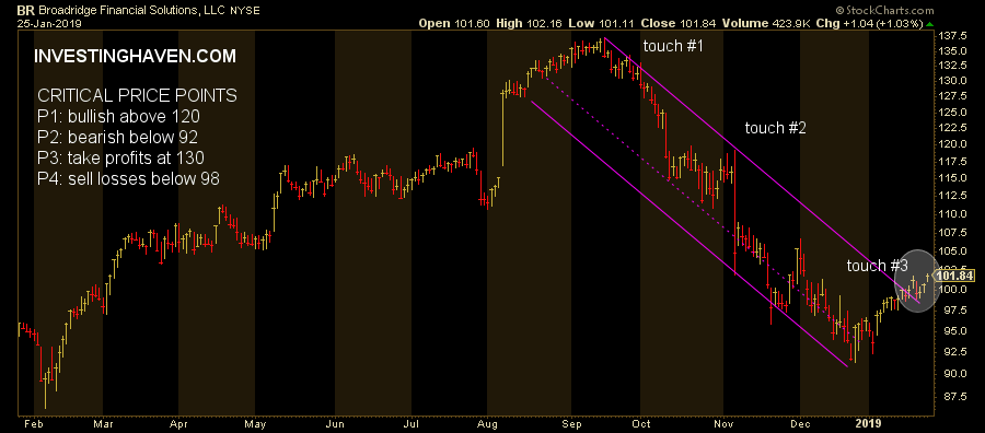 While many are obsessed with the stock market crash of 2019 we stay focused on our own method. Our proprietary set of 15 leading indicators suggest that there is no market crash coming, maybe another dip in the next months. In this context we believe tech stocks are a great play, and specifically Broadridge Financials (BR) looks juicy with a confirmed breakout on its chart. Broadridge Financials is a riskless way to play tech stocks.