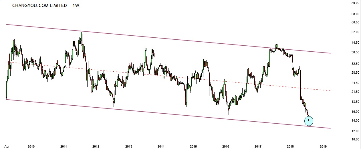 Price of Changyou.com is in a never ending downtrend in the form of a perfect channel.