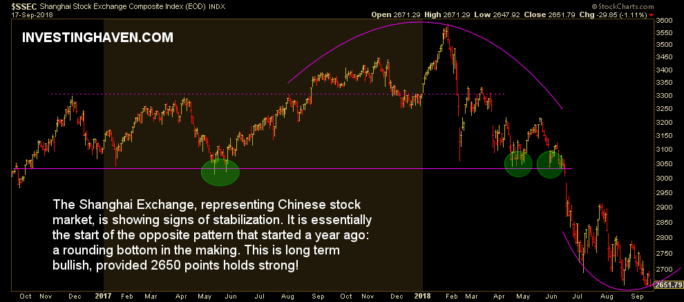 China’s stock market must be catastrophic, right, because the media say so and because a terrible trade war just go started. Well, we have news for, really relevant news though: China’s stock market shows the first signs of a rounding bottom. And as we all know: if it looks like a rounding bottom, smells like a rounding bottom, sounds like a rounding bottom, then likely it is one. With this, we see the first signs that our emerging markets forecast for 2019 (EEM) might become as bullish as predicted, with China being one of top 4 emerging markets in 2019.