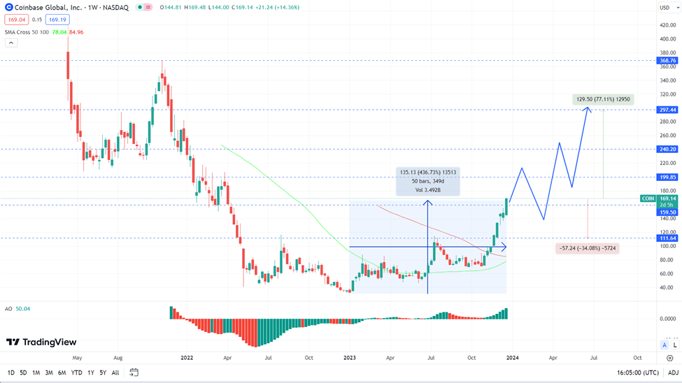 COIN Price Prediction 2024 – Technical Indicators Point to +77% Gain, Propelling $COIN Towards $297