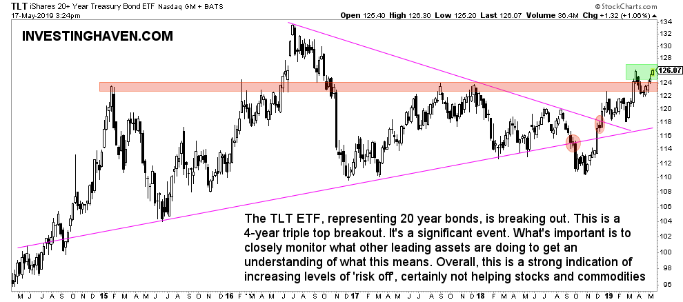 One of the very important fear indicators, or defensive assets indicators, is clearly on the rise: 20 year Treasuries in the U.S.
