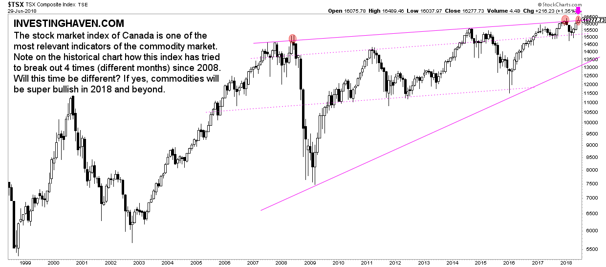 The historical Canada stock market chart has an amazing setup. Investors better take this into historical chart account. After 3 attempts over the last 10 years to start a new secular uptrend the million dollar question is: will this time be different? The long term monthly Canada stock market chart will soon provide us with the answer.