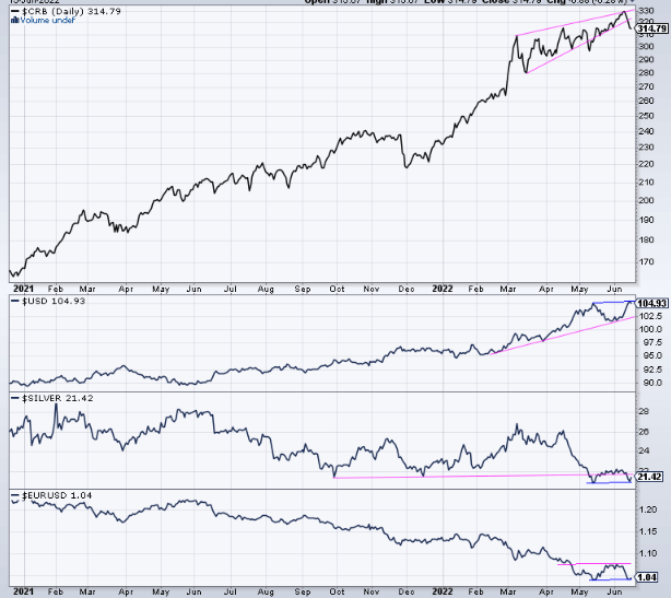 The Commodities Index, Silver, Euro and the USD after the FOMC Meeting Today