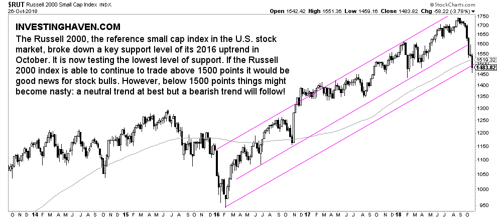 Many believe the stock market crash of 2018 has started. We are not convinced, at least not yet. Although the decline in October 2018 was very unusual, as in very aggressive, there is still not enough evidence to believe that this is another 2008-alike crash. However, never say “never” in markets. It is instrumental to keep an open-mind for all outcomes. By analyzing the leading stock market charts it is clear that the next few months, if not next few weeks, will be the most important ones of this decade!