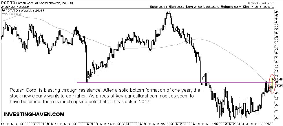 Given the data points outlined in this article, it is clear that Potash Corporation of Saskatchewan (POT) is a darling among investors at the start of 2017. Both fundamentals and supply/demand look great. InvestingHaven’s research team confirms this viewpoint.