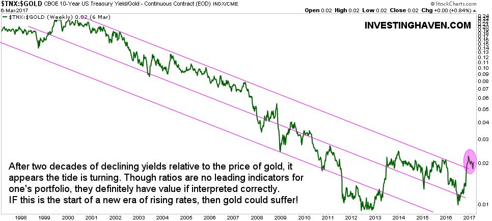 The bearish case is supported by the recent trend in the US dollar which continues its bull market. That is bullish for yields but bearish for gold. By the way, that was also the main reason why we wrote Gold Investors Watch Yields As A Gold Price Indication For March 2017.