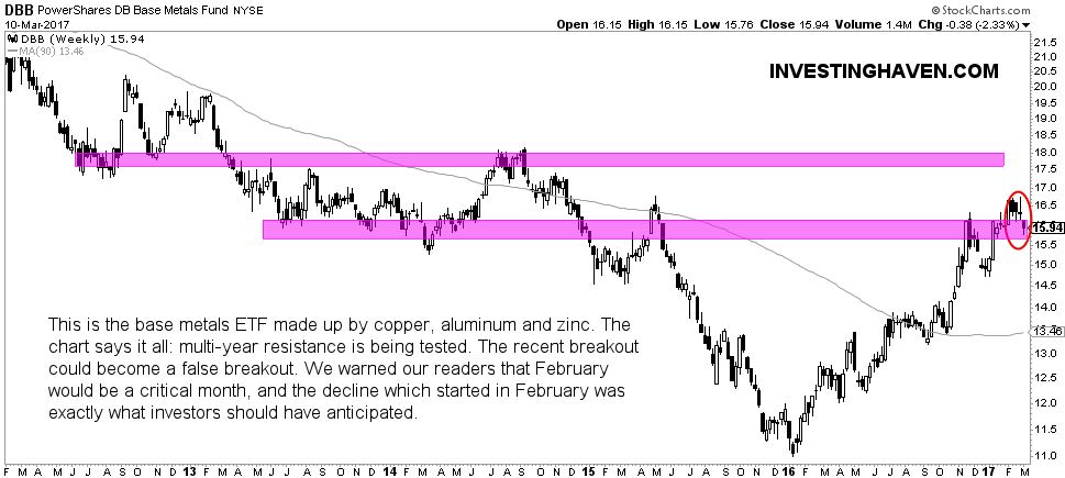 Next, base metals have lost some 10 percent in recent weeks. InvestingHaven’s analysts flashed a warning a while back, explaining why February 2017 was crucial for base metals. The chart structure combined with an above average rise in 2016 were the two reasons to recommend prudence.