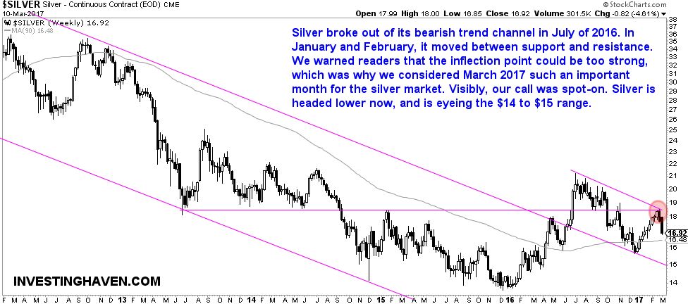 So far, InvestingHaven’s long term price targets are still in play, as defined many months ago in our 2017 gold forecast and silver forecast 2017.