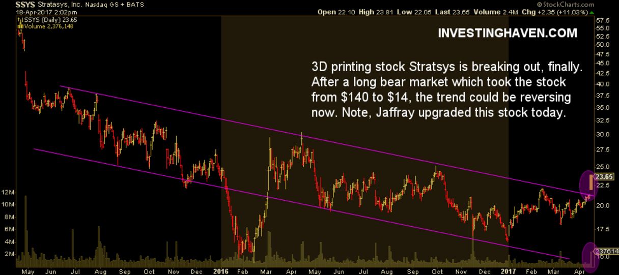 The breakout in Stratasys is visible both on the daily and weekly chart.