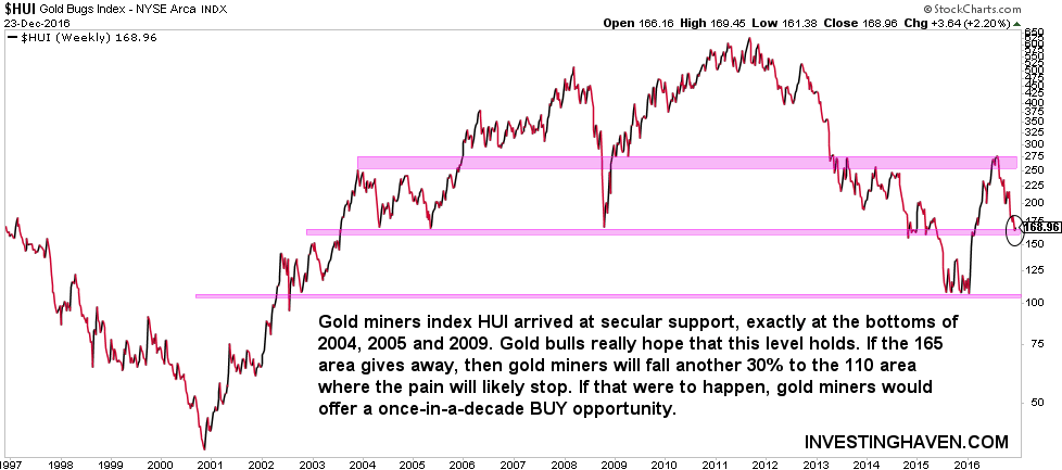 One thing: if gold miners will fall, we will be big buyers around the 110 level in the HUI index, as we believe gold miners could provide a once-in-a-decade opportunity to make big money in a short period of time. 2017 is setting up to become a very interesting year, and we recommend checking our gold price forecast for 2017 in which we will update periodically the evolution in the gold market.