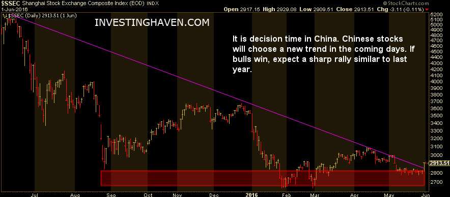 Meantime, the key question according to us: “what is price doing”? Price is the only real barometer of the investment community. Price includes all decisions made by all market participants, whether manipulated or not. Price in the short term looks ready to break out. We obviously refer to the stock market price of the Shanghai Stock Exchange.