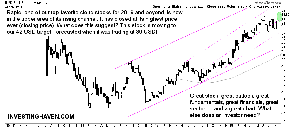 [UPDATE ON 22 AUGUST 2018: At the bottom of this article we add an update of this stock as well as a new chart on 22 August 2018. It really shows that Rapid7 is still a strong buy, and our price target of 42 USD wil be met easily, if not crushed!]