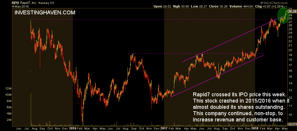 UPDATE ON 22 AUGUST 2018: At the bottom of this article we add an update of this stock as well as a new chart on 22 August 2018. It really shows that Rapid7 is still a strong buy, and our price target of 42 USD wil be met easily, if not crushed!