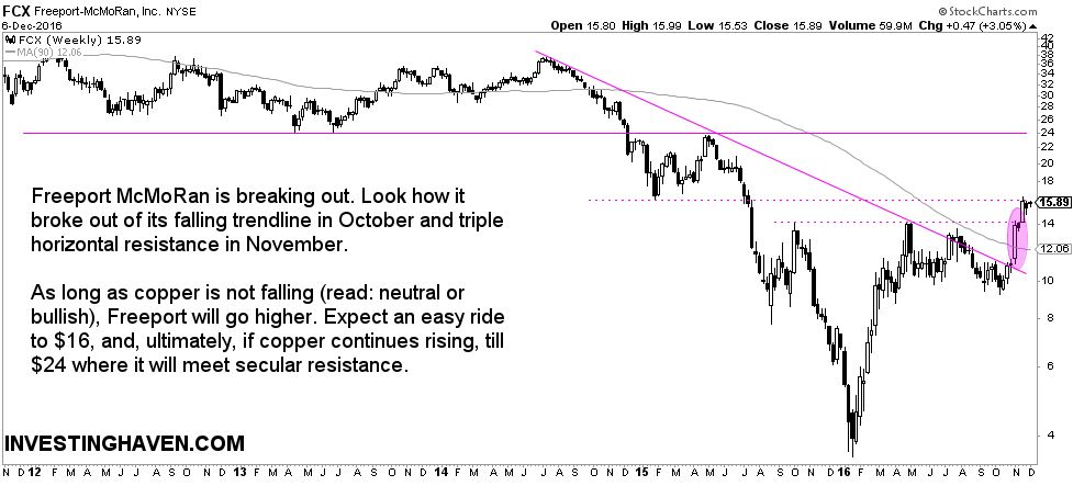 If the price of copper moves higher from here, we have a secular breakout, and FCX will move at least to $24 in a short period of time. Of course, that is a big IF.