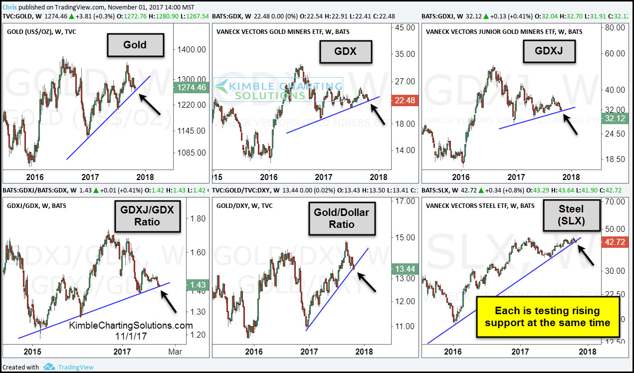 It does not happen often but in this article we feature a chart from a fellow blogger and investor. He nicely collected several charts in one overview. It shows how the gold market is on the verge of a breakdown as 2018 kicks off. Again, this would be a tactical breakdown, not a secular breakdown. Chart coursey: Kimble.