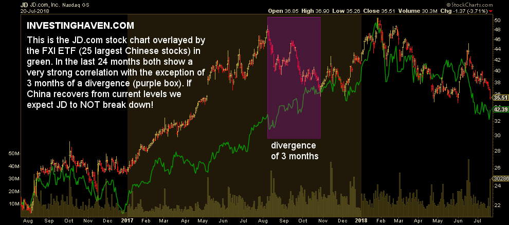What does InvestingHaven’s research team believe? We believe JD will go up again, not only based on its fundamentals (we refer to the above mentioned article in which we concluded that its fundamentals look great) but also based on the correlation with large cap Chinese stocks which is shown below.