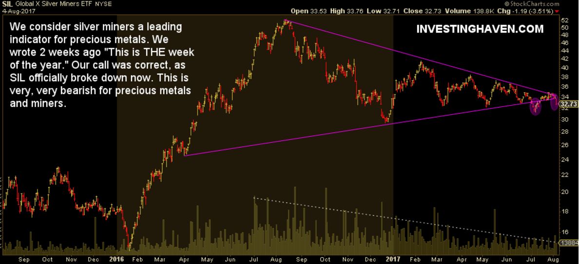 Silver Miners Starting To Break Down, Bearish For Precious Metals