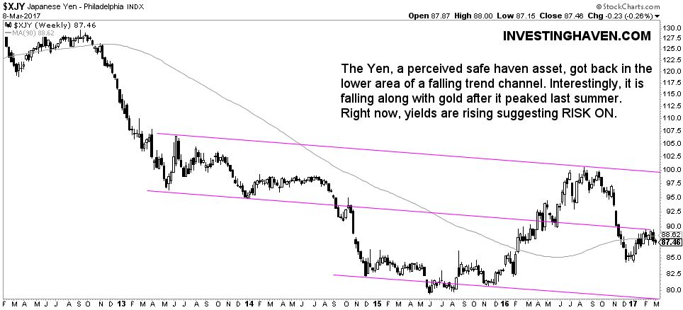 This article provides a look at 4 leading safe haven assets: yields, US dollar, gold, Japanese Yen. The trend we spot on their charts is quite unusual and not what most investors would expect.