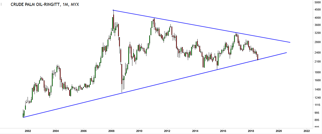Palm oil futures are trading at major multi-decade support: