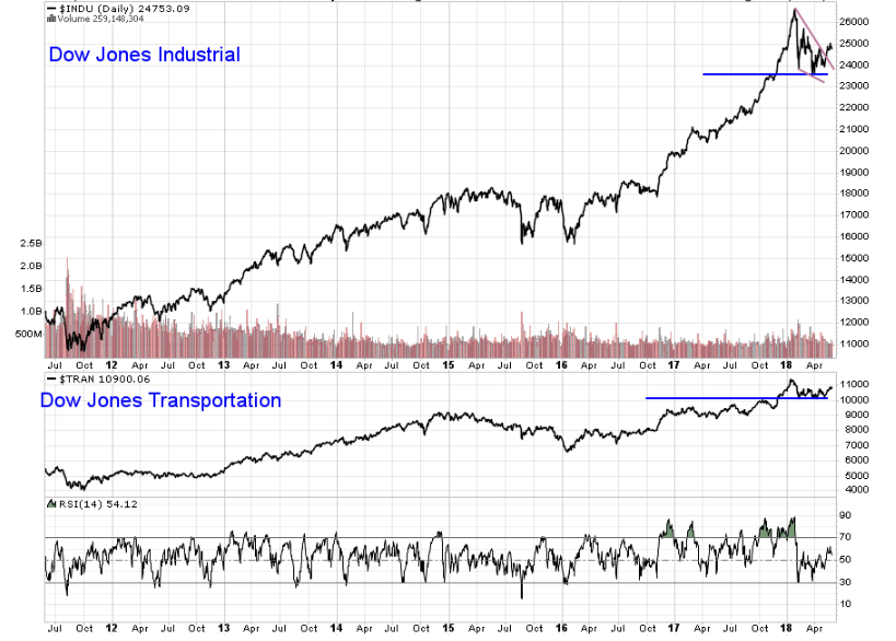 A few weeks ago, we published that the Dow Theory Confirms US Stock Markets Still Bullish, With Profit Potentials Ahead in the US Stock Market. Our article today will provide our readers with an updated outlook for the US Stock market based on the recent performance of both the DJ Industrial (DJI) and DJ Transportation.