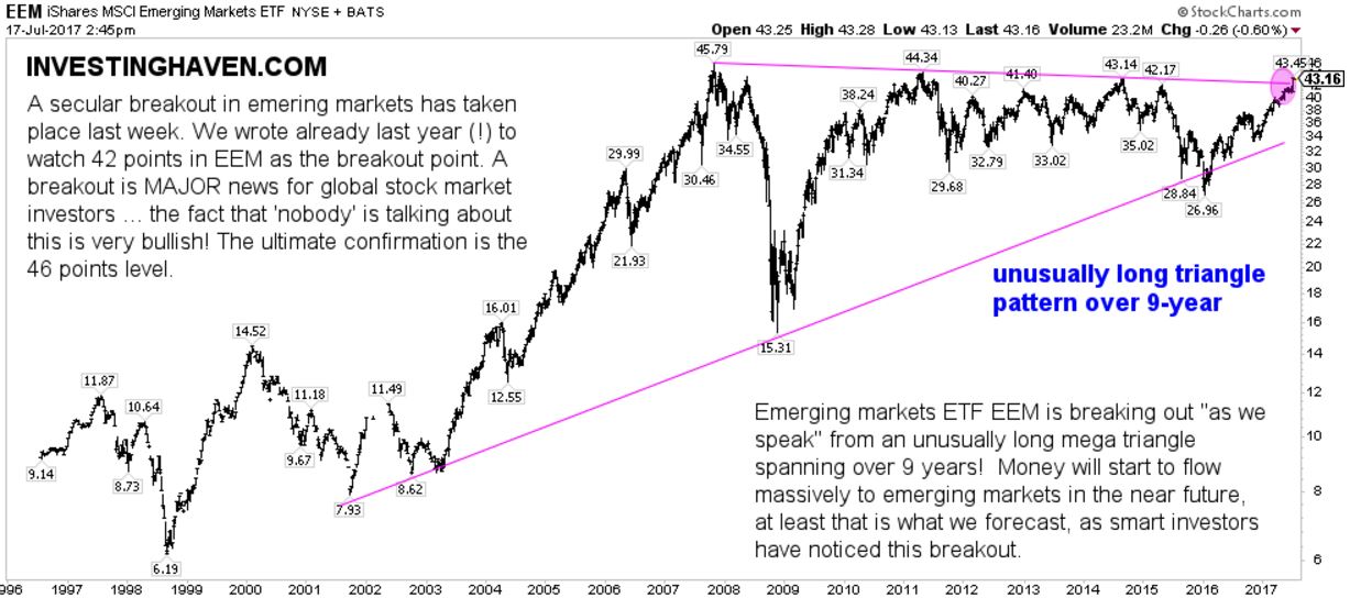 We published a nice emerging markets stock chart in yesterday’s article 3 Hottest Market Trends Of Summer 2017. However, in the current article, we have 2 truly awesome charts.