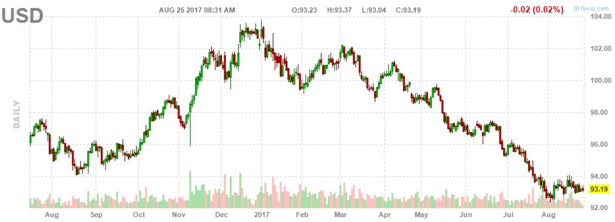 First, the dollar corrected more than 10 percent since the first days of this year. That is meaningful for the most traded currency in the world. The dollar has a track record of being volatile. Right now, the dollar index stands at 93.19 points; it visibly is forming a bottom over the last 4 weeks, with a series of higher lows. There is always a possibility that the dollar goes lower from here, which will be once 92.25 points is broken to the downside.
