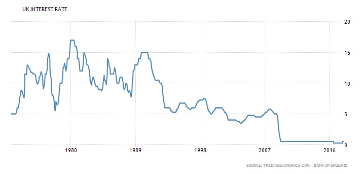 As can be referred from chart above, the unemployment rate of the UK doubled to ~8% approx 3-4 years after the 2008 global financial crisis. The Bank of England (BOE) had to emulate the USA on the unpopular yet necessary stance to reduce interest rate for prolonged period of time as shown below. QE is also another weapon use to combat recession. Finally, UK unemployment rate is back to almost historical low and we deem this a good indication of recovering economic as opposed to what IMF has suggested.