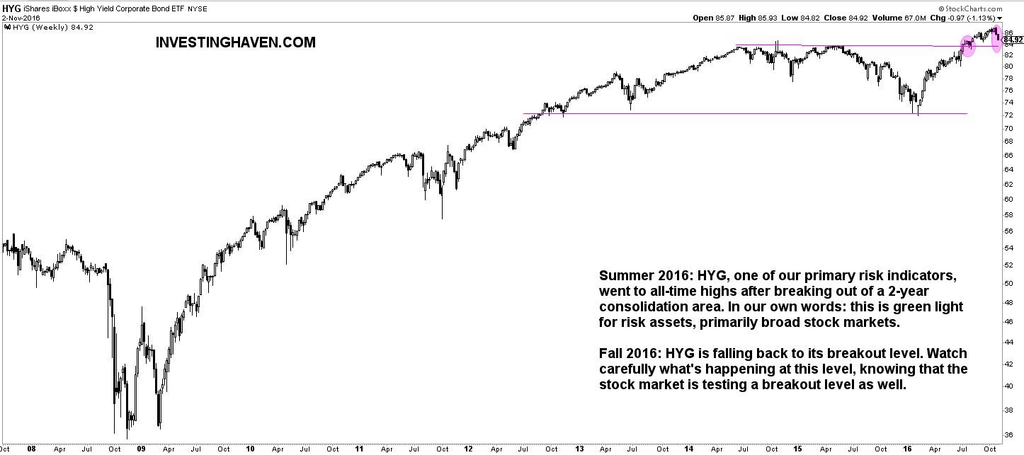 So investors find themselves in a situation where stock indexes as well as leading indicators are all simultaneously testing critical support levels. A little bit of time is needed for markets to reveal the direction they want to choose. This is not the time to panick (yet), but to be extremely vigilant.