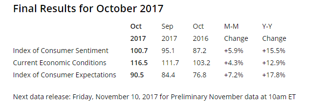 US Consumer sentiment is at its highest. October numbers show how we are at historically high figures: