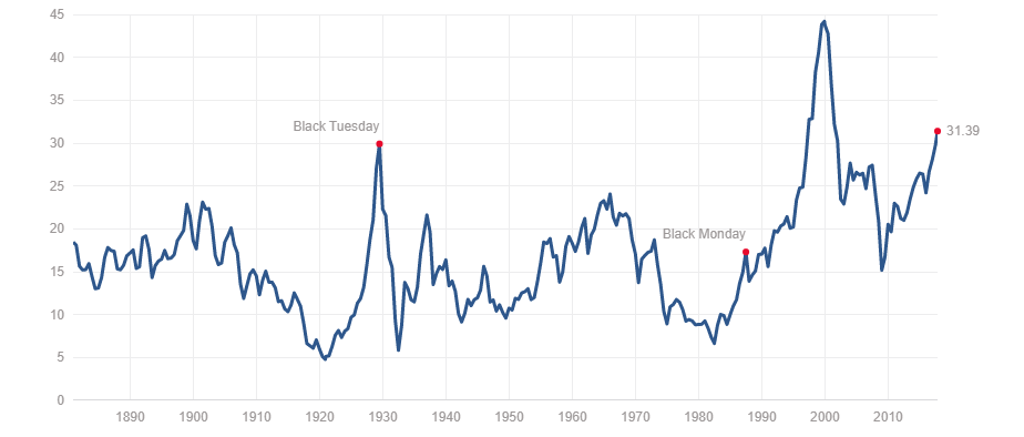 The Bearish scenario is that the market is at the Top currently and we see a stock market crash in 2018. We do not see this happening anytime soon but the Siller PE ratio is rather concerning and at a minimum suggests that the market is due for a correction.