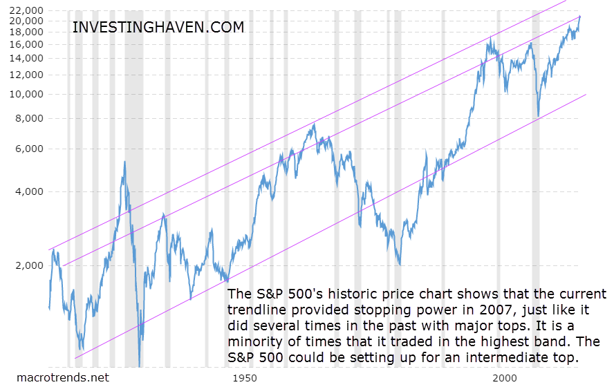Moreover, it is was only a minority of times that the S&P 500 was trading in the highest ‘band’, above the trend line that is being tested right now.