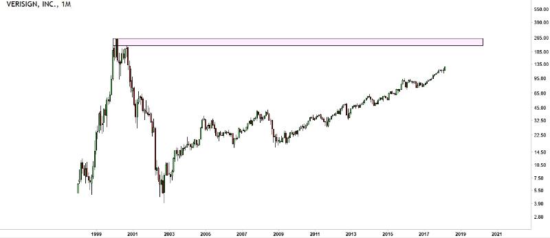 At the time or writing the price of Verisign has made an initial big move and the next immediate target will be ~138. Whether or not price has the power to break through we cannot guarantee. From an investment point of view, as long as the company is producing solid fundamental with excellent security verification business, ultimately price is going to challenge the dotcom collapse price of between 206-259.