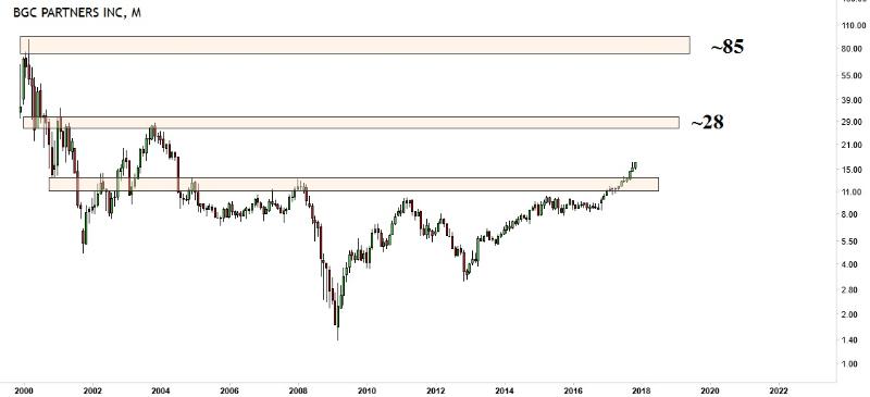Lastly, BGC Partners Inc (BGCP) is also making a serious attempt to reach ~28 which we suspect will need a little consolidation as the next and most bullish upside target is 85 (do not expect a swift rise though).