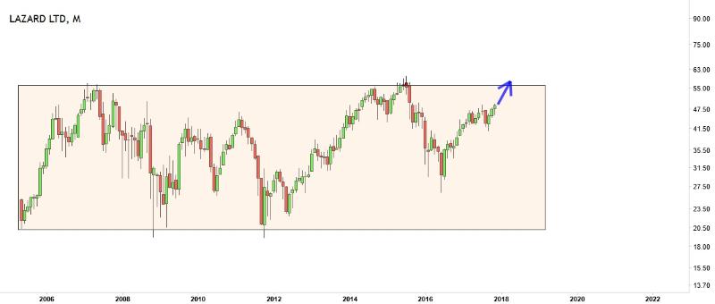 At the time of writing, Lazard (LAZ) is trading at 48.19, ~57.25 is definitely the next target before a subsequent upside move. The very same price of 48 could be the first support should price reverse.