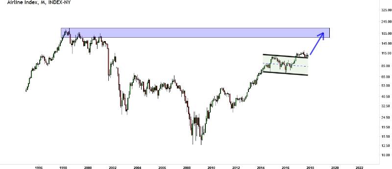 Strangely, despite such a gloomy scenario, the chart of the airlines index –XAL – is sending the opposite signal right now.