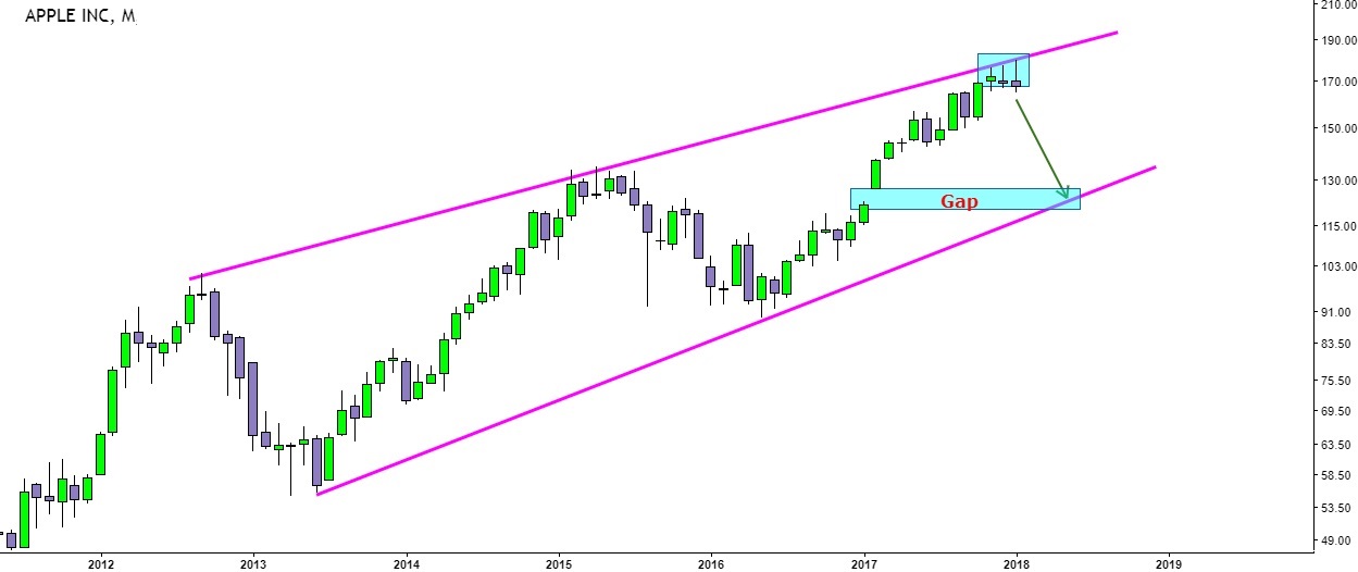 However, something is odd when InvestingHaven’s team checked the monthly chart of Apple Inc. And it seems to be consistent with the fundamental reason of why Apple wants to cut down production by half as announced during its earnings report on 1st Feb 2018.
