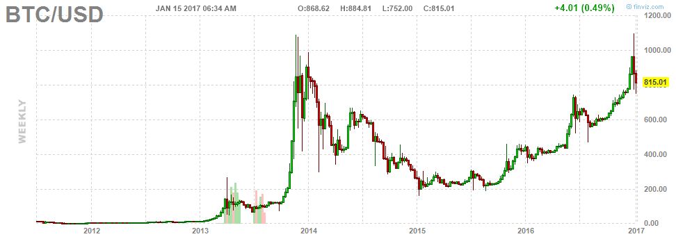 As suggested by the bitcoin price chart, more volatility is likely, as every correction was mostly followed by at least one more correction. However, the sharper the rise, the sharper the correction. Although bitcoin almost tripled in 2016, it is still nothing compared to the euphoria seen in 2013.