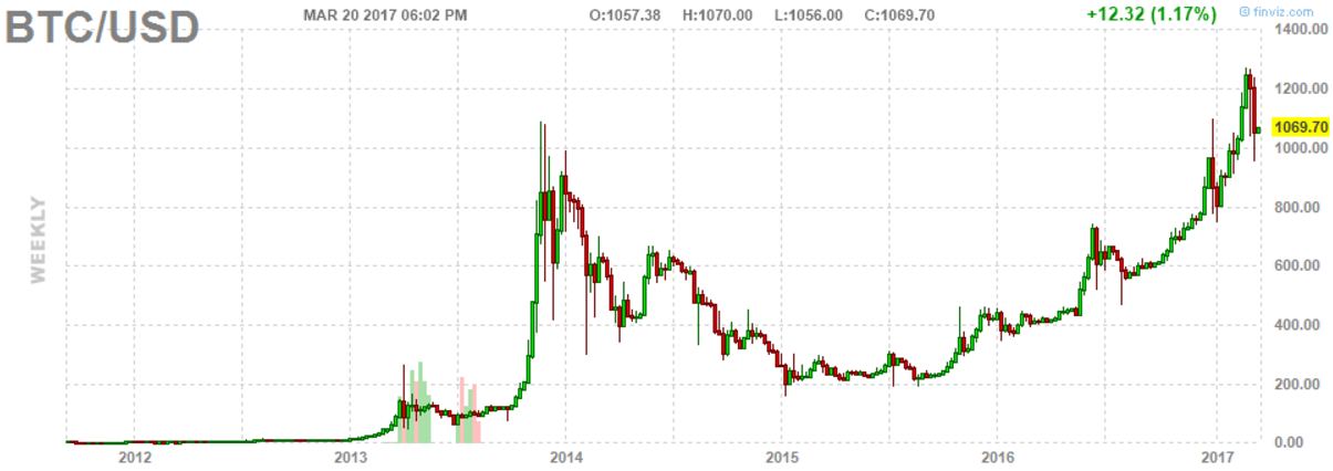 The recent mini-crash of Bitcoin is good news, in the sense that parabolic rises never last long. Investors prefer to see a steady rise. We wrote in our recent Bitcoin Price Forecast For 2017 that “we hope there will be a healthy correction sooner rather than later, to cool off emotions. Ideally, bitcoin’s price corrects to the $1000 to $1100 area in the coming weeks.” Again, that is how it played out.