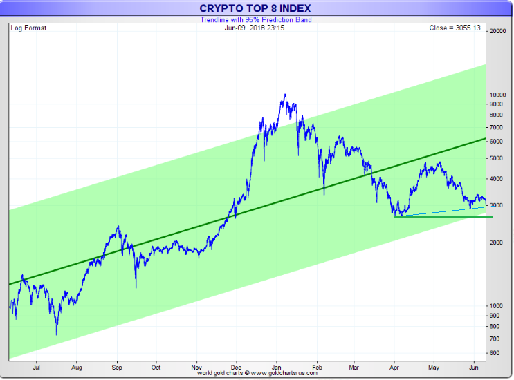 This is one of the charts we derived from our June 2018 Cryptocurrency outlook: top 8 Cryptocurrencies are still in a rising channel, at the bottom of the channel to be precise, and that makes for a great entry for the longer term.