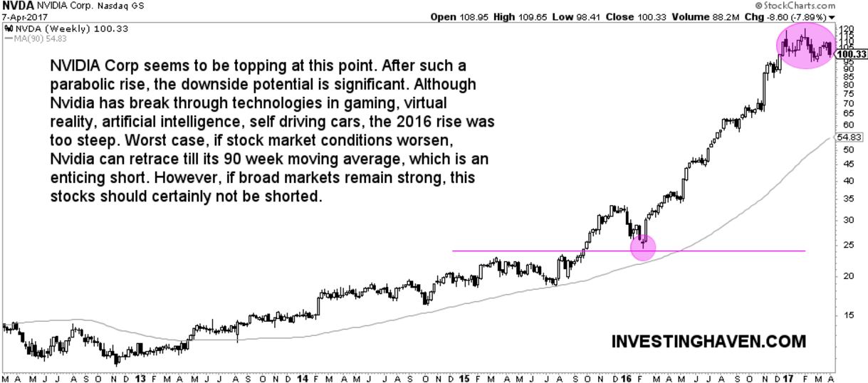 Ultimately, NVDA can come down, until its 90 week moving average, which is around $55. Not that this our forecast, but it’s a potential downside target for the short to medium term, depending on how broad markets will act.