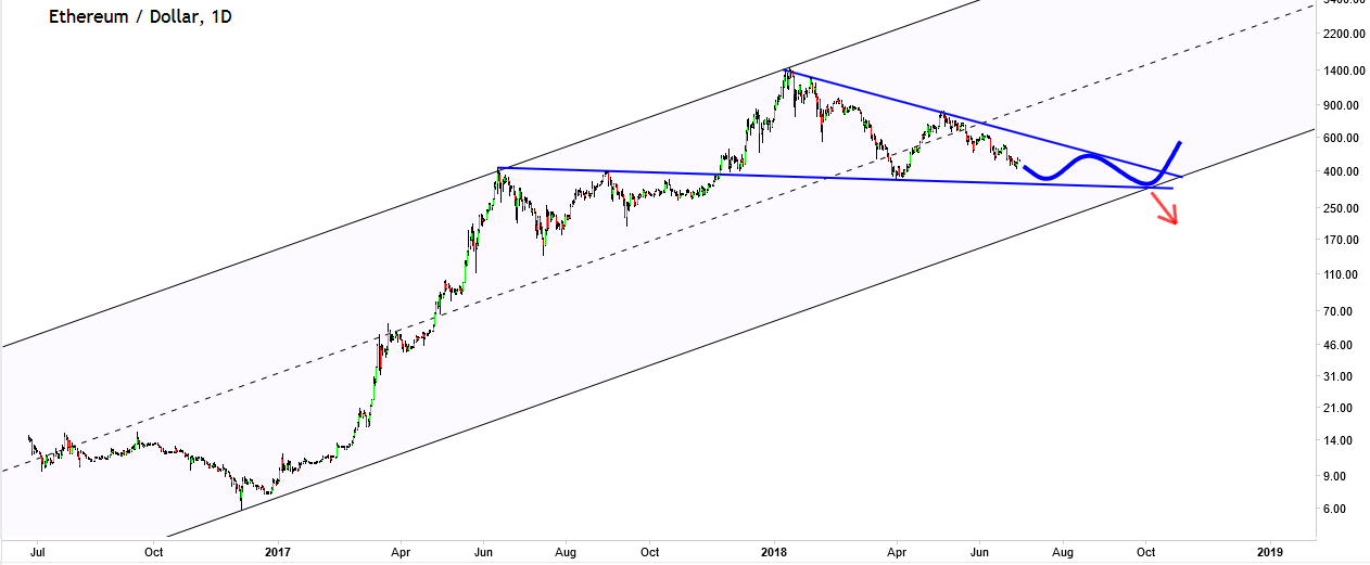Ethereum is showing some signs of life again, finally. The strong correction that started early May lasted some full 8 weeks. On the last day of June all cryptocurrencies, including Ethereum, took off, and, today, there is another sign of strength. This is something we have not seen in 2 months, so it’s an encouraging sign. But how long may it take until Ethereum really takes off again, and breaks out to start a new bull market?