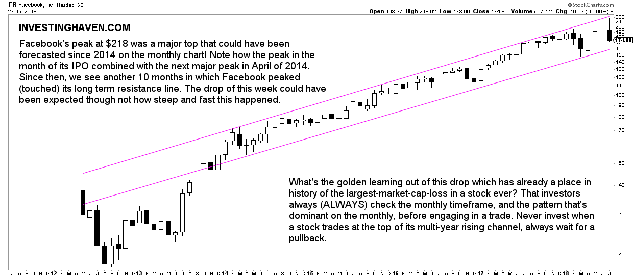The monthly chart of Facebook would have been an amazing guide for Facebook investors, at least those that used it and got the predictive information out of it that’s available in there.