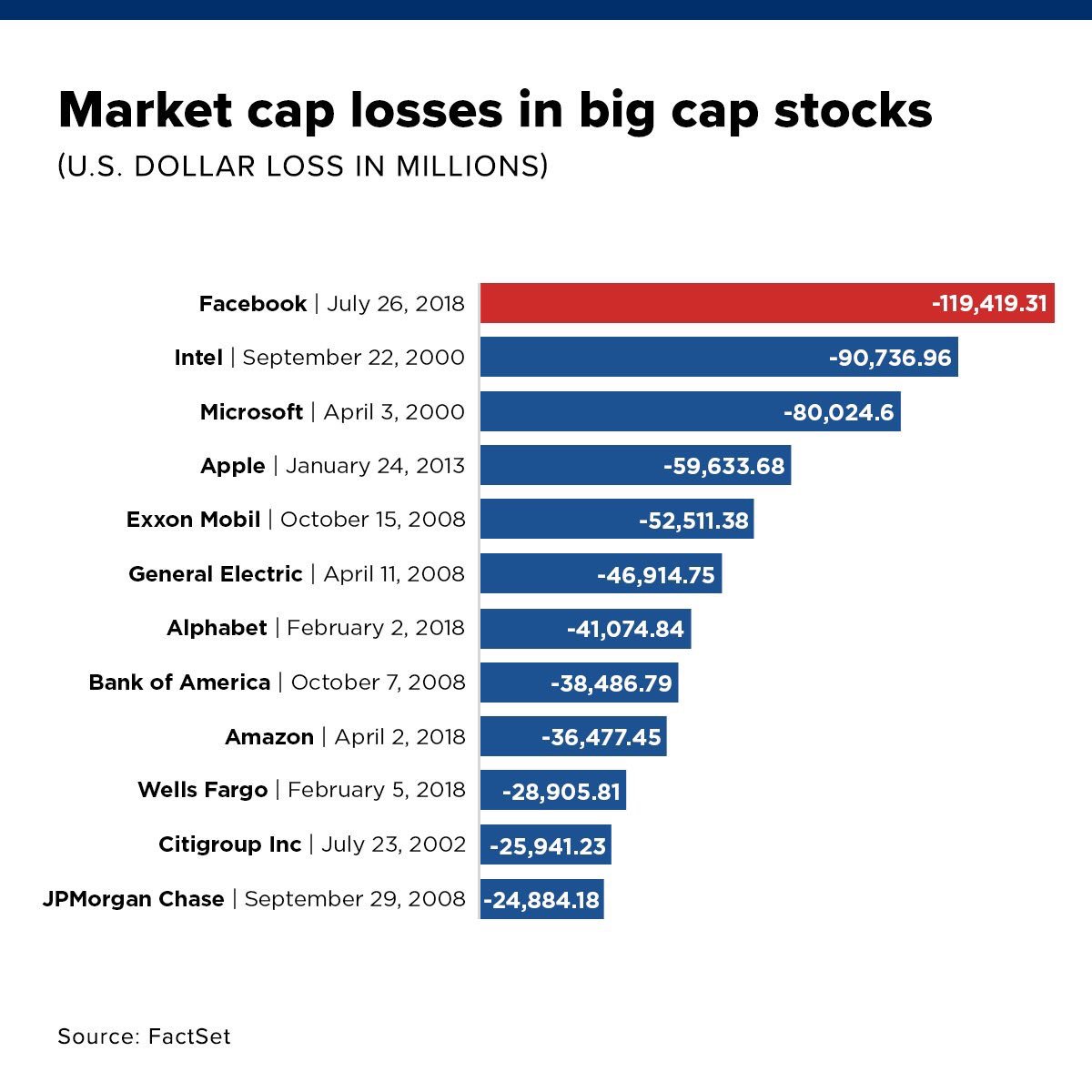 Before looking into our forecast we want to share this overview with you. It shows the largest market cap losses in history in large cap stocks. As seen, Facebook’s loss is 30 pct more than the second one which is the Intel losses during the dot com crash!
