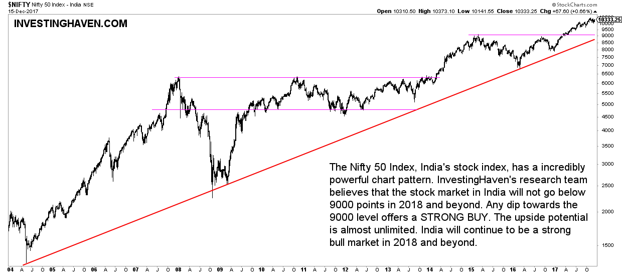 How high can India’s stock market go? The potential is almost unlimited. And that, combined with great fundamentals and not so bullish sentiment (great from a contrarian perspective) is what makes us super bullish on India in 2018 and beyond.