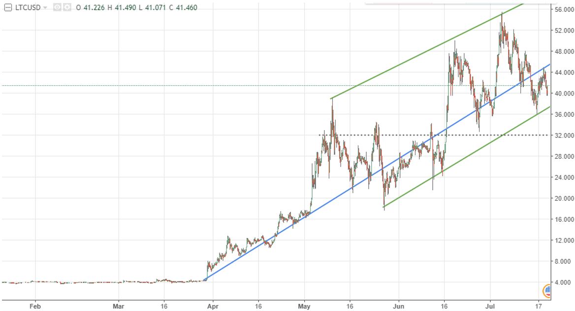 Update mid-November 2017: we see more upside potential in Litecoin as explained in Litecoin price on the rise mid-October. Moreover, given today’s chart setup, we expect the 100 USD in Litecoin’s price to materialize before 2018 starts.