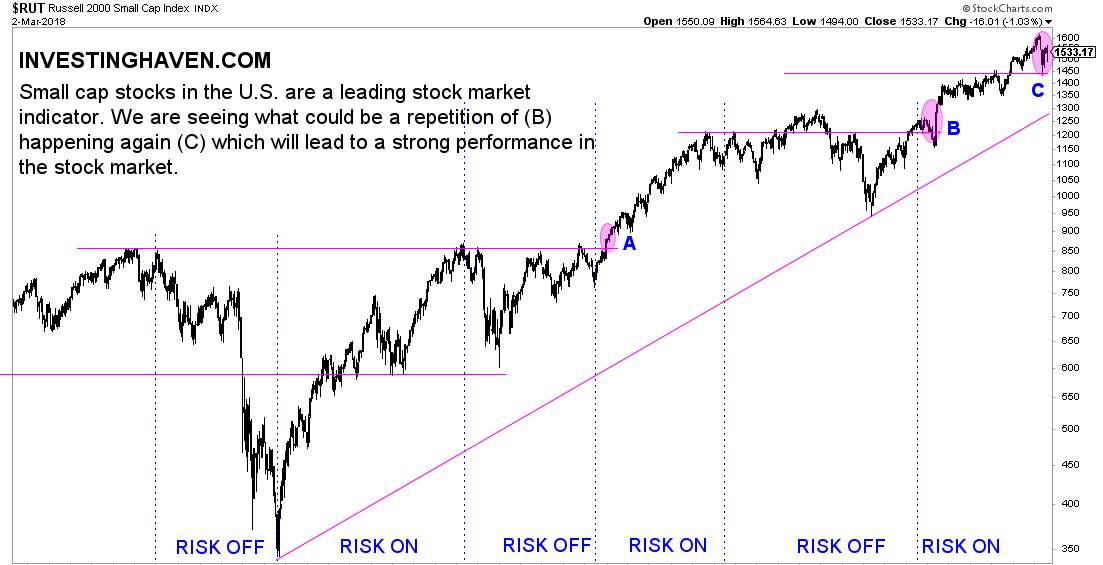 The last week of February 2018 closed on a market sell off. The Dow Jones dropped with more than 400 points on a Bearish outlook mostly driven by speculations on Trump’s tariff. Most investors are wondering again if this is the end of the Bullish run in the stock market. We don’t think so, at least not yet. The following 2 charts will clarify why.