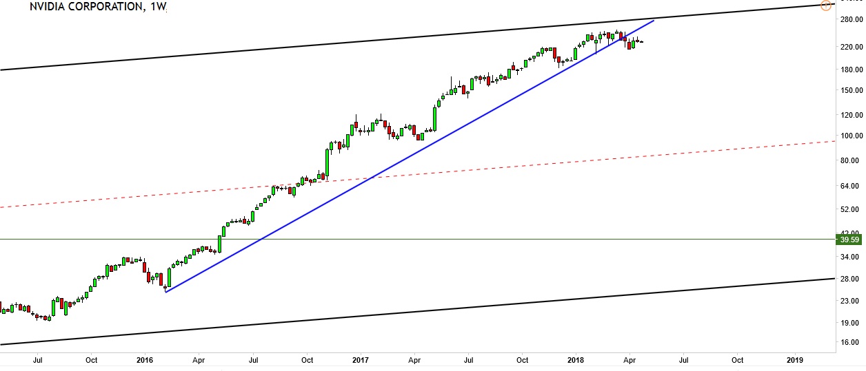 In May 2016, the price of Nvdia made a historical breakout above the 2007 peak of 39.6. The break was so clean that it didn’t retrace to test the resistance-turned-support but carry on the ballistic move to hit the top of around 250.