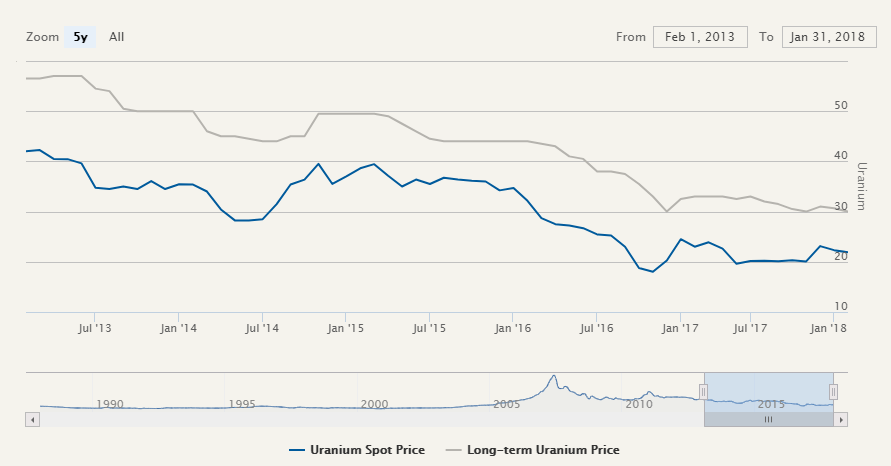 in 2017, Kazakhstan announced a significant cut in Uranium output. Later on the same year, Cameco announced production cuts and the temporary closure of 2 Uranium mines in Canada.
