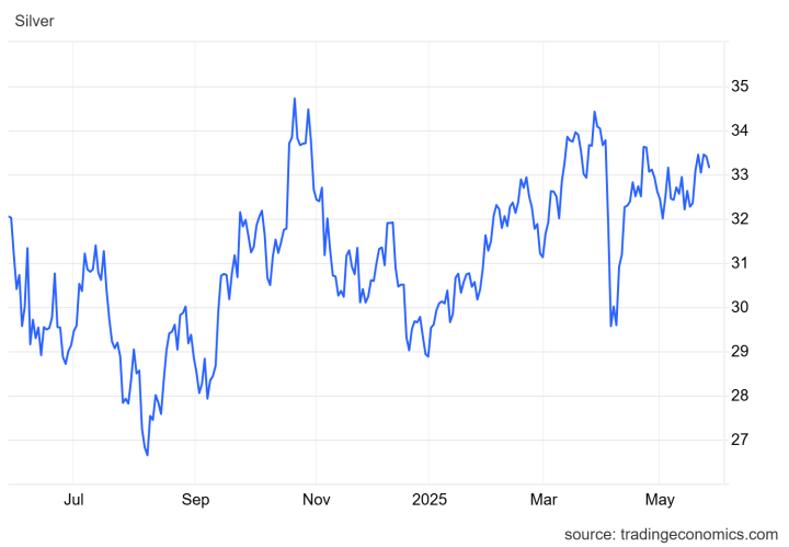 Silver’s role in electronics and artificial intelligence is also expanding. Data centers—which rely heavily on silver for its conductivity—are growing at an annual rate of 33% through 2030.